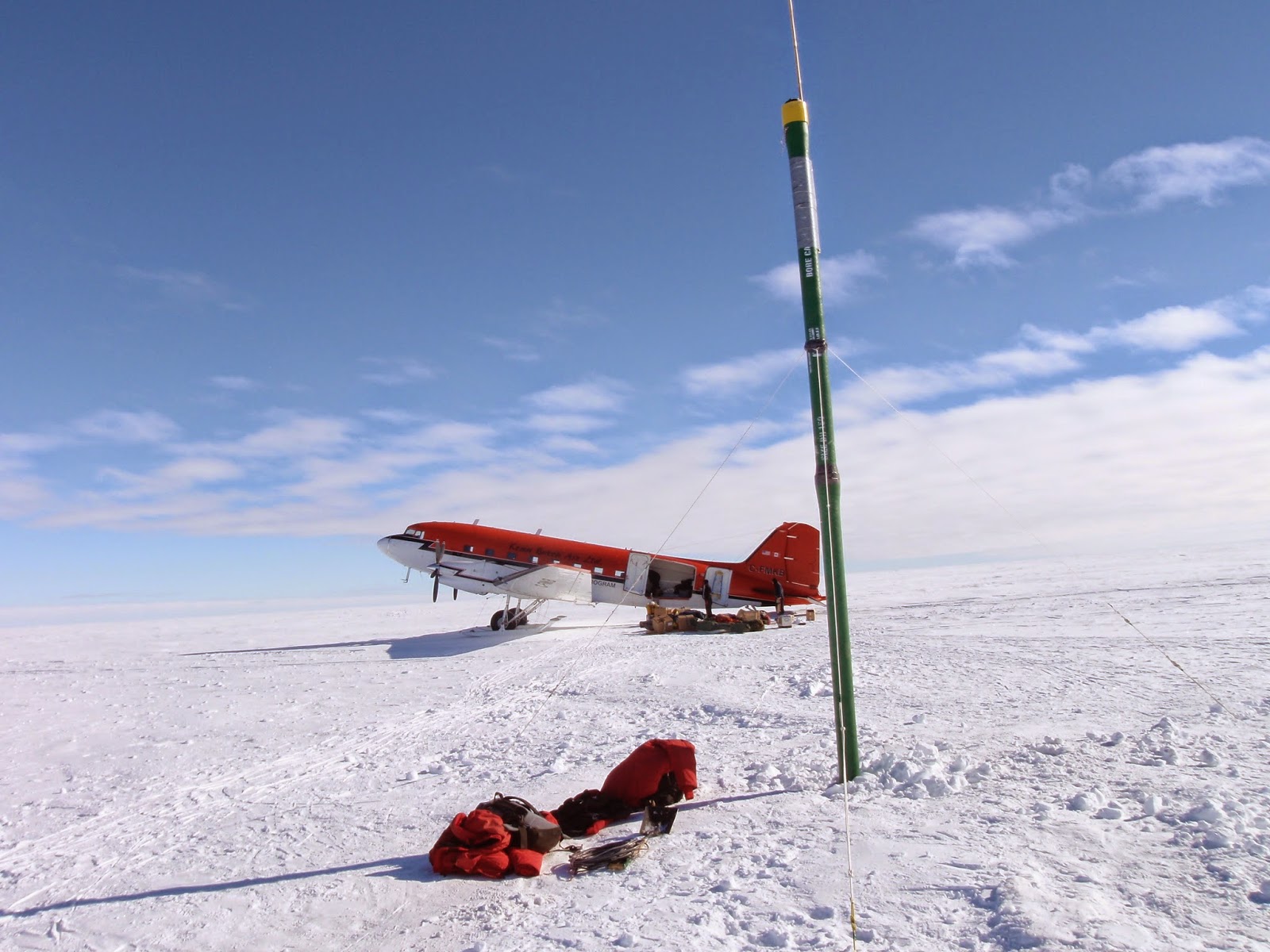 [Loading the plane. As when we arrived, the only evidence of our presence is the borehole casing! We've extended it in case it's a long time until the next folks come for a visit.]